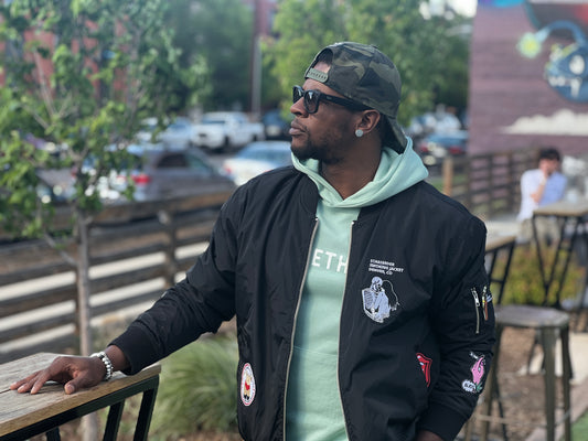 STARSEEDER ORIGINAL | SMOKING JACKET - DENVER, CO - Premium Recycled Bomber Jacket - White On Black